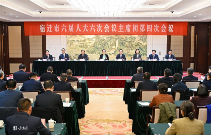 宿迁网讯(记者 纪雅囡 俞艳) 1月24日上午,市六届人大六次会议主席团举行第四次会议。盛蕾、刘浩、冯岩、赵丽丽、徐勤忠、张卫东、冯如意、马伟在主席台就座。市人大常委会副主任张卫东主持会议。